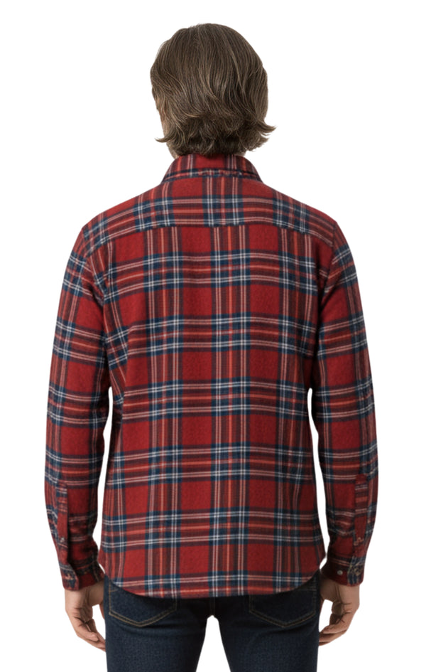 • Men's Heathered Fleece Overshirt with Chest Pockets and Tortoise-shell patterned Buttons