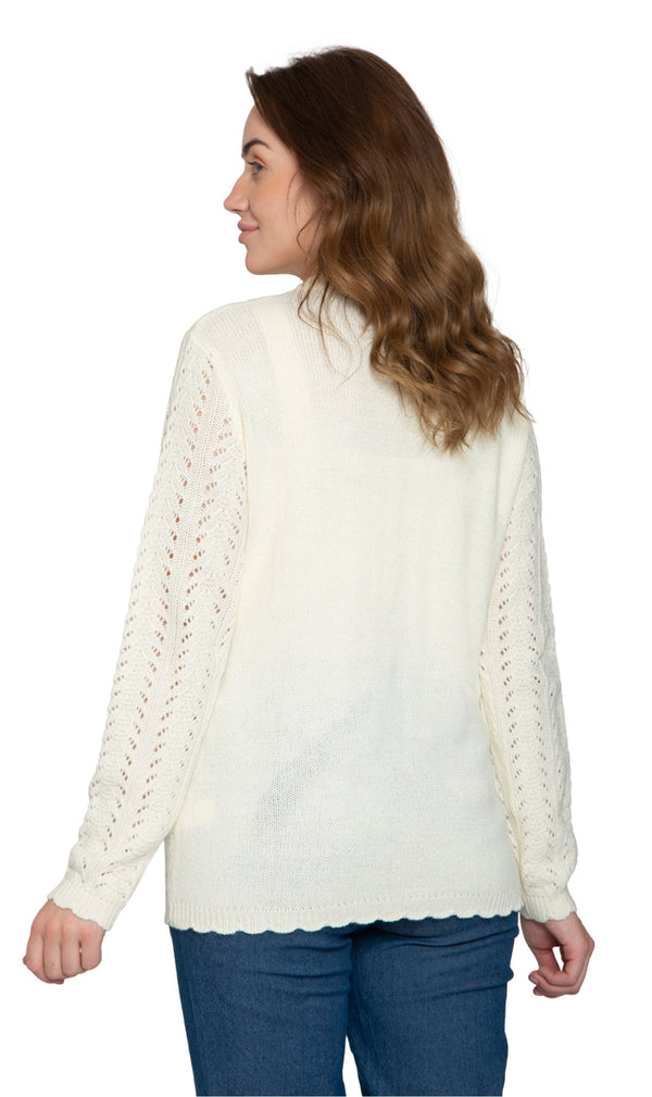 Women's Faux Pearl Cardigan in Cashmere Ivory FULL