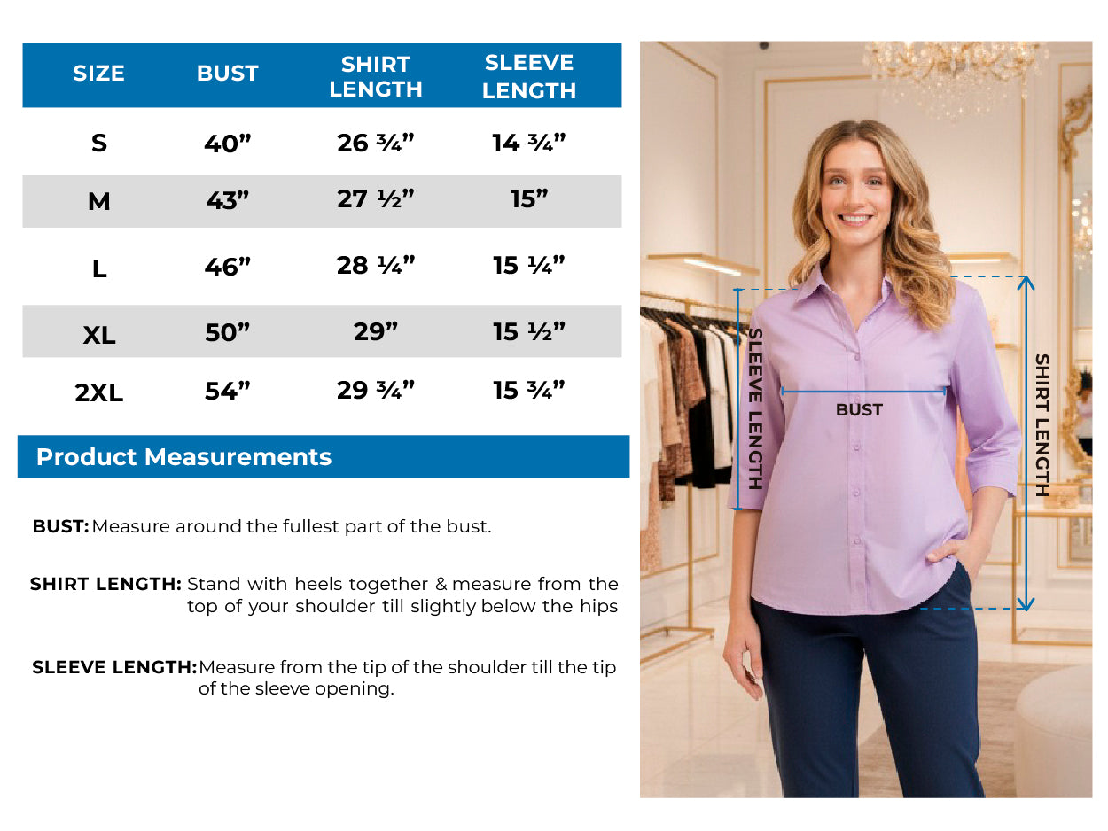 - Versatile : The ¾ length sleeves with notched cuffs for a sophisticated touch in the women button down shirt can be styled with a varierty of bottoms and is ideal for both office wear and casual outings.