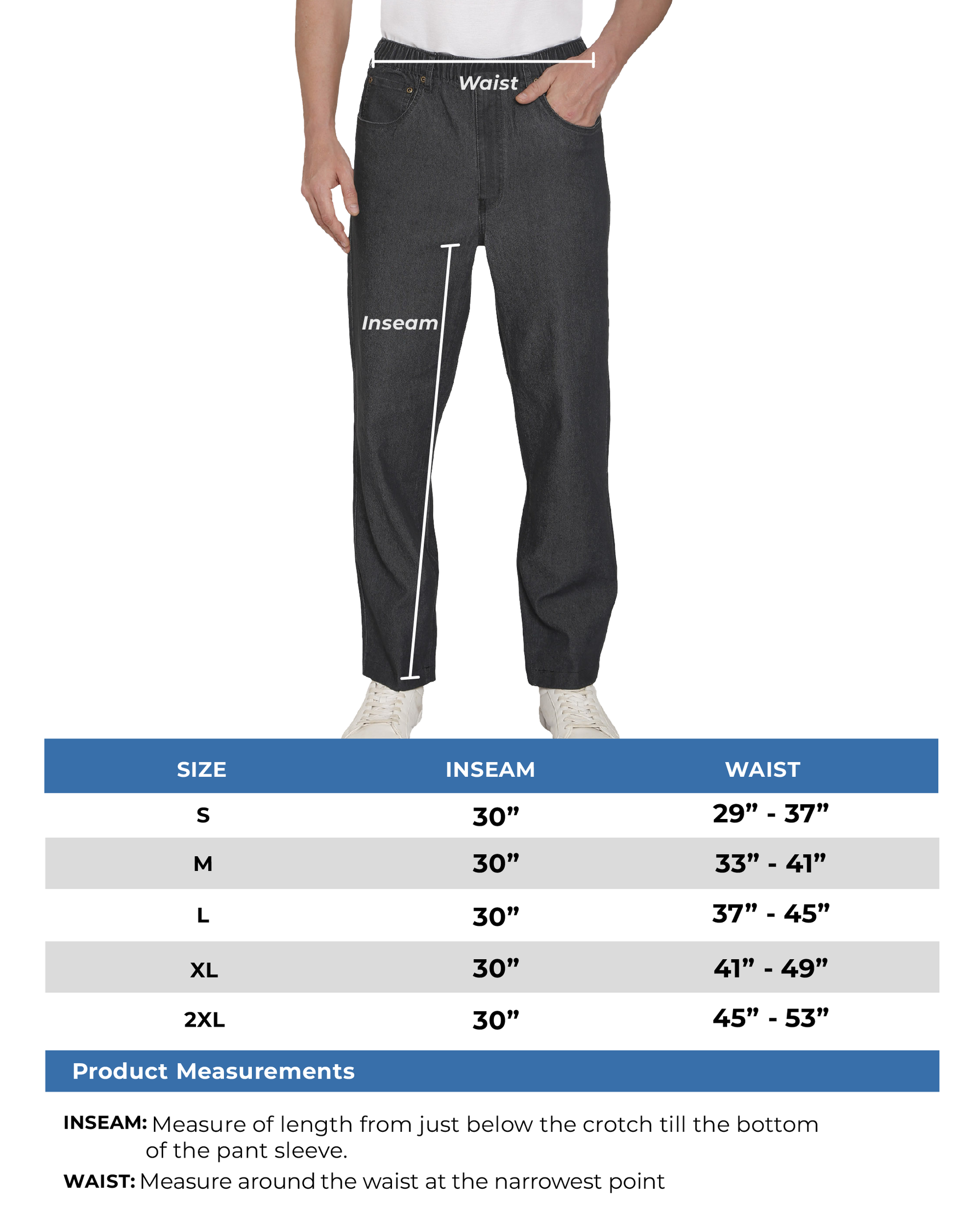 Turtle Bay New York Men's Casual Elastic Waist Denim Pull on Jeans Pants -Black - Full - TURTLE BAY APPAREL